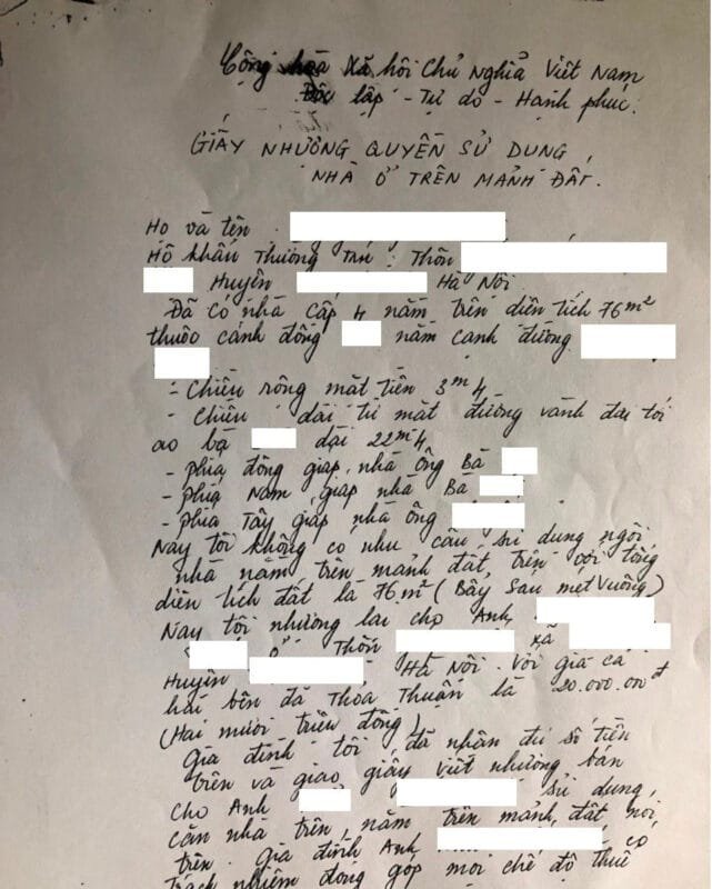 * Thửa đất đã được cấp Giấy chứng nhận mà mua bán đất bằng giấy viết tay